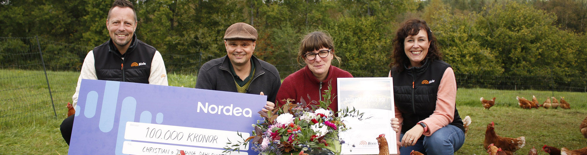 Christian och Johanna Dahlqvist är två eldsjälar som med stor passion och ett hållbart helhetsperspektiv driver en gård i Sundhult. De är pionjärer i Sverige inom regenerativt jordbruk som går ut på att bygga upp jordhälsan för att skapa möjligheter för kolinlagring och därmed minska koldioxiden i atmosfären. De producerar även sin egen el på gården via solceller. Genom föreläsningar och sociala medier delar de givmilt med sig av sin kunskap och sina erfarenheter inom regenerativ odling, självförsörjning och solelsproduktion.