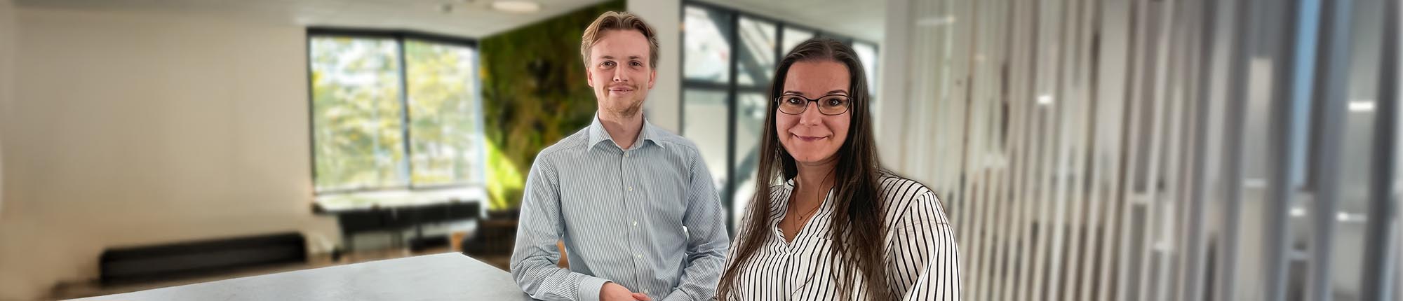 Både Joel och Adrienn är utbildade till nationalekonomer. Men Joel kommer direkt från studierna, medan Adrienn har hunnit arbeta flera år och fyllt på sin ryggsäck med erfarenhet från hälso- och sjukvården.